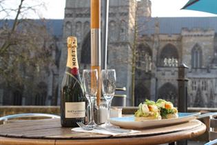 Seating is arranged on two floors with views of the cathedral, plus an outside dining area by the green, perfect for al fresco dining on sunny days. They serve breakfast and brunch all day, and lunch from 12 midday to 4:30pm. Afternoon teas start at 2pm, with traditional Cream Teas and Devonshire High Teas, in addition to a range of homemade cakes. Tea is blended and coffee roasted in Porlock, Somerset, and beers are from St. Austell, Cornwall.