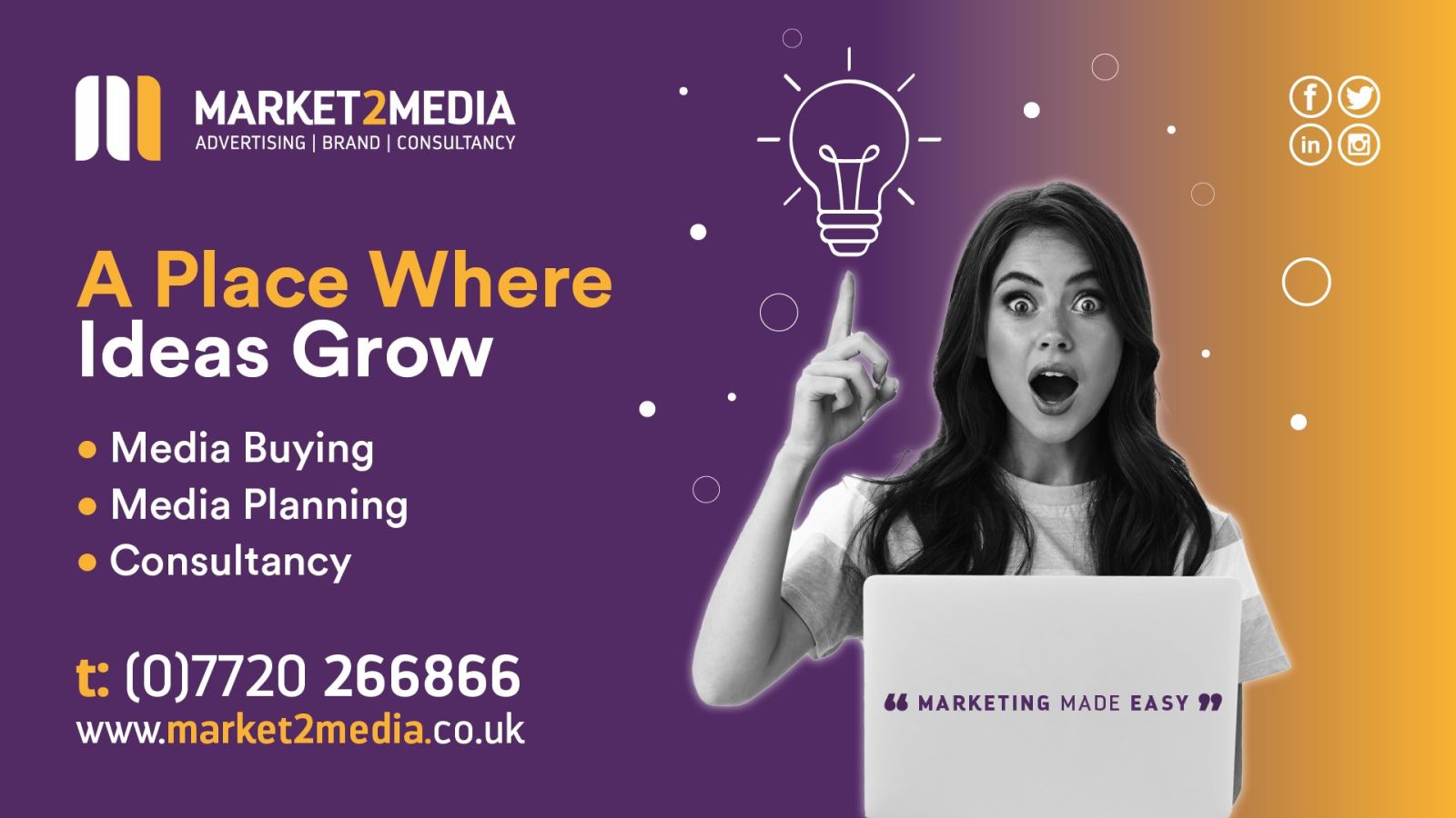 If you're looking for a simple approach that works for your business, Market2Media can help make it happen from the moment you connect. From advertising and digital marketing to marketing strategies and event management, reach out to Tricia at: tricia@market2media.co.uk or call 07720 266866.
