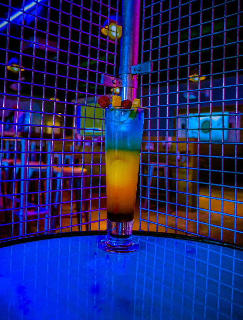 Boom Battle Bar takes you on a journey with their vibrant blend of rum, Blue Curaçao, grenadine, passion fruit syrup, and pineapple—a true explosion of flavours.