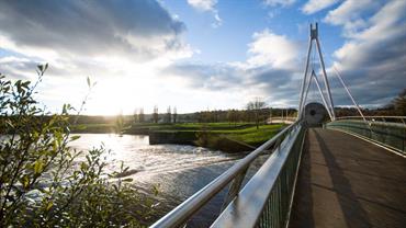 * The Redhills Walk (about two and a half miles) - explores the green areas and viewpoints in Redhills and the western fringes of Exeter. There are one or two steep climbs between the River Exe flood plain, with its allotments and playing fields, and these leafy hills. The Millers Crossing bridge over the Exe is one of the highlights of the walk, especially when the river is high.